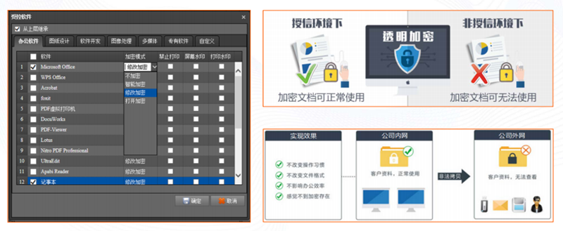 重要數(shù)據(jù)資料在加密基礎上,實現(xiàn)內外部數(shù)據(jù)流轉管控。核心重要資料的非常規(guī)內部使用,必須經(jīng)過解密審批或單獨授權。公司外部的流轉使用,可通過限定次數(shù)、限定時間、限定電腦、限定對象來進行管控。