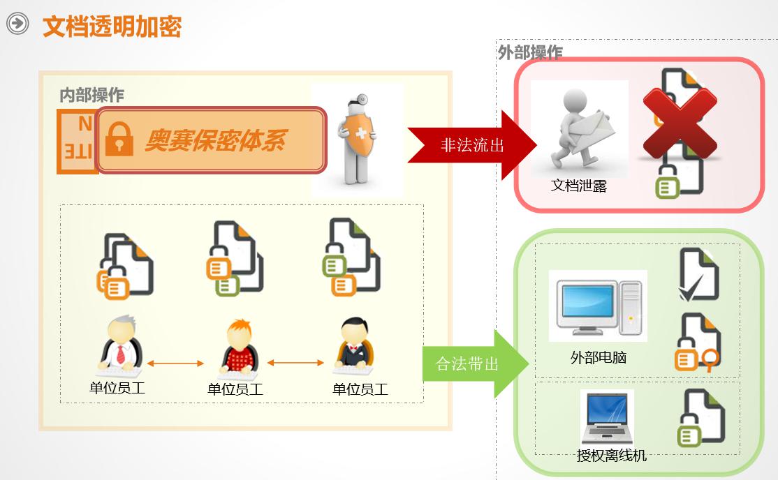 奧賽云盾采用先進(jìn)的文件內(nèi)核加密技術(shù),在無(wú)需人工干預(yù)、不影響員工辦公的前提下對(duì)數(shù)據(jù)進(jìn)行全程智能加密,在內(nèi)部環(huán)境可正常使用,脫離內(nèi)部授權(quán)環(huán)境則無(wú)法打開(kāi)。根據(jù)實(shí)際業(yè)務(wù)需求可使用打開(kāi)加密、修改加密、手動(dòng)加密、智能加密等靈活多樣的加密策略。