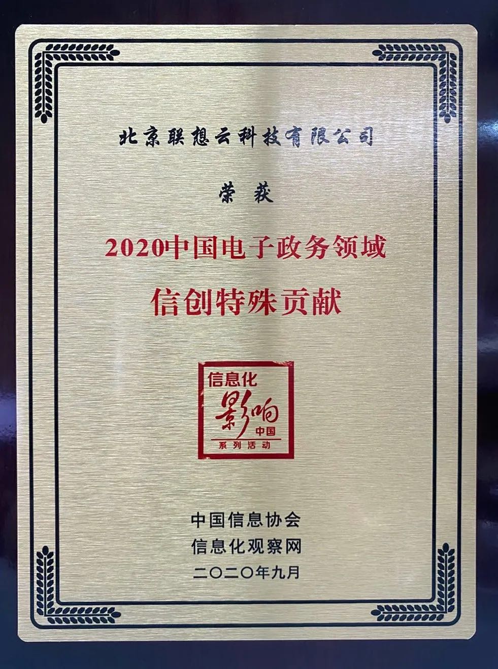 聯(lián)想云榮獲2020中國電子政務(wù)領(lǐng)域信創(chuàng)特殊貢獻(xiàn)