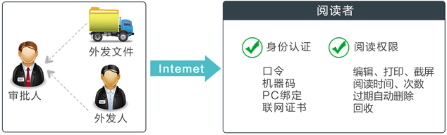 為了保障與合作單位之間的文件交互安全,奧賽云盾提供了文檔外發(fā)管理模塊。支持用戶根據(jù)外發(fā)文檔的重要性不同授予不同的認證方式和訪問權(quán)限; 設置成功后,外發(fā)文檔可通過各種方式外發(fā)。外部用戶無需安裝客戶端,經(jīng)過身份認證后,即可在授權(quán)范圍內(nèi)訪問該文檔。