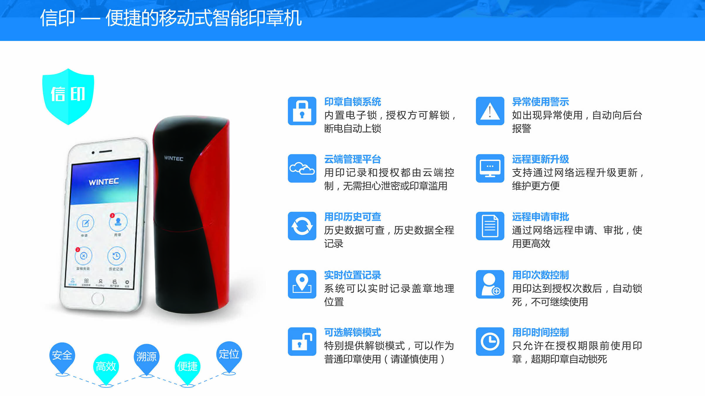 位置定位,異常報警,印章外帶安全可控;